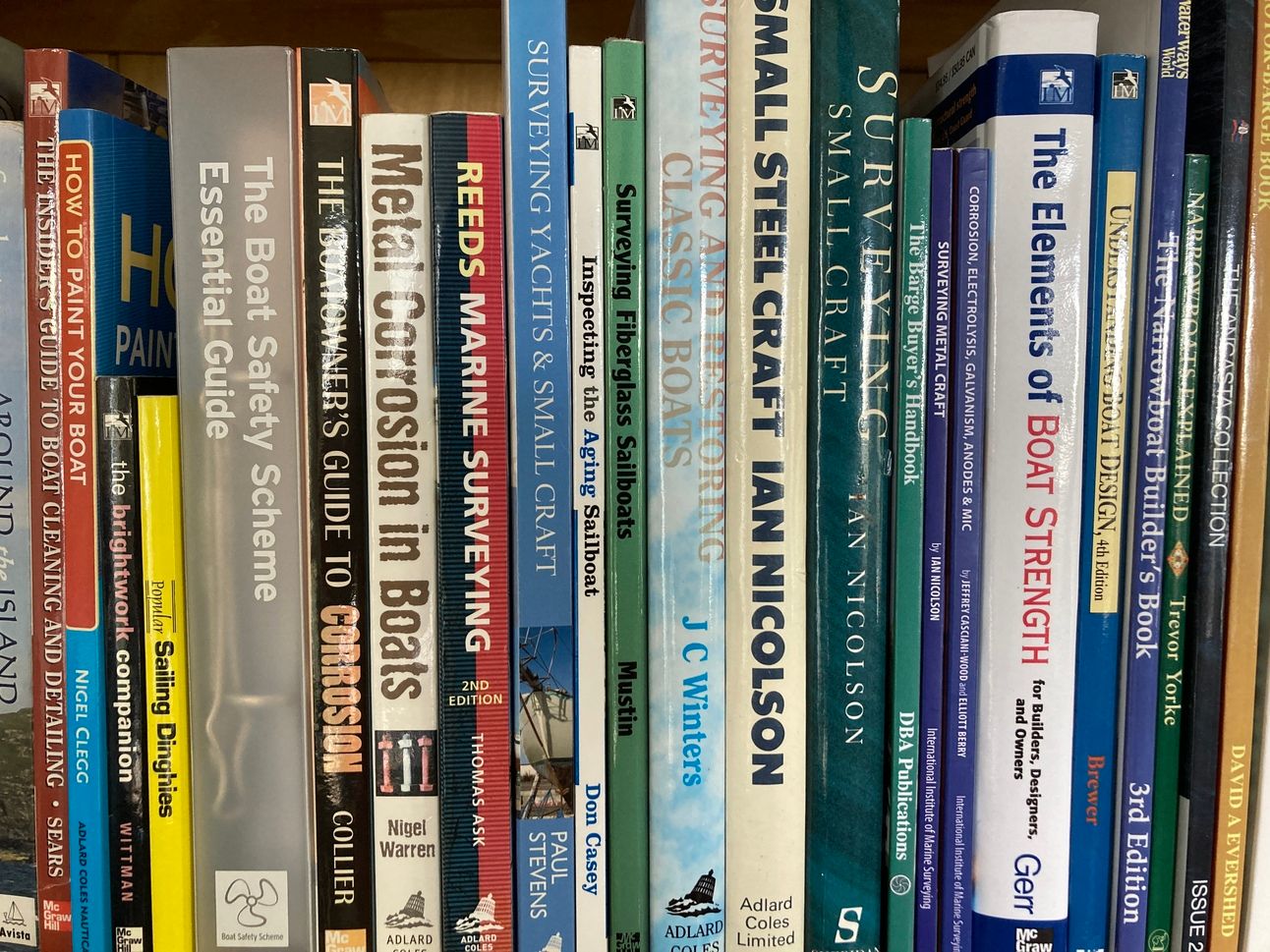 Like most marine surveyors I have acquired a bookcase full of various texts relating to the marine surveying trade and maritime industry as a whole. Some are now out of print and some aren’t worth recommending but there are some really excellent books about marine surveying and boat design, building and maintenance that I do recommend. Several of these have helped me develop my skills both as a marine surveyor and also as a sailor and are great reads for boat owners and surveyors.
