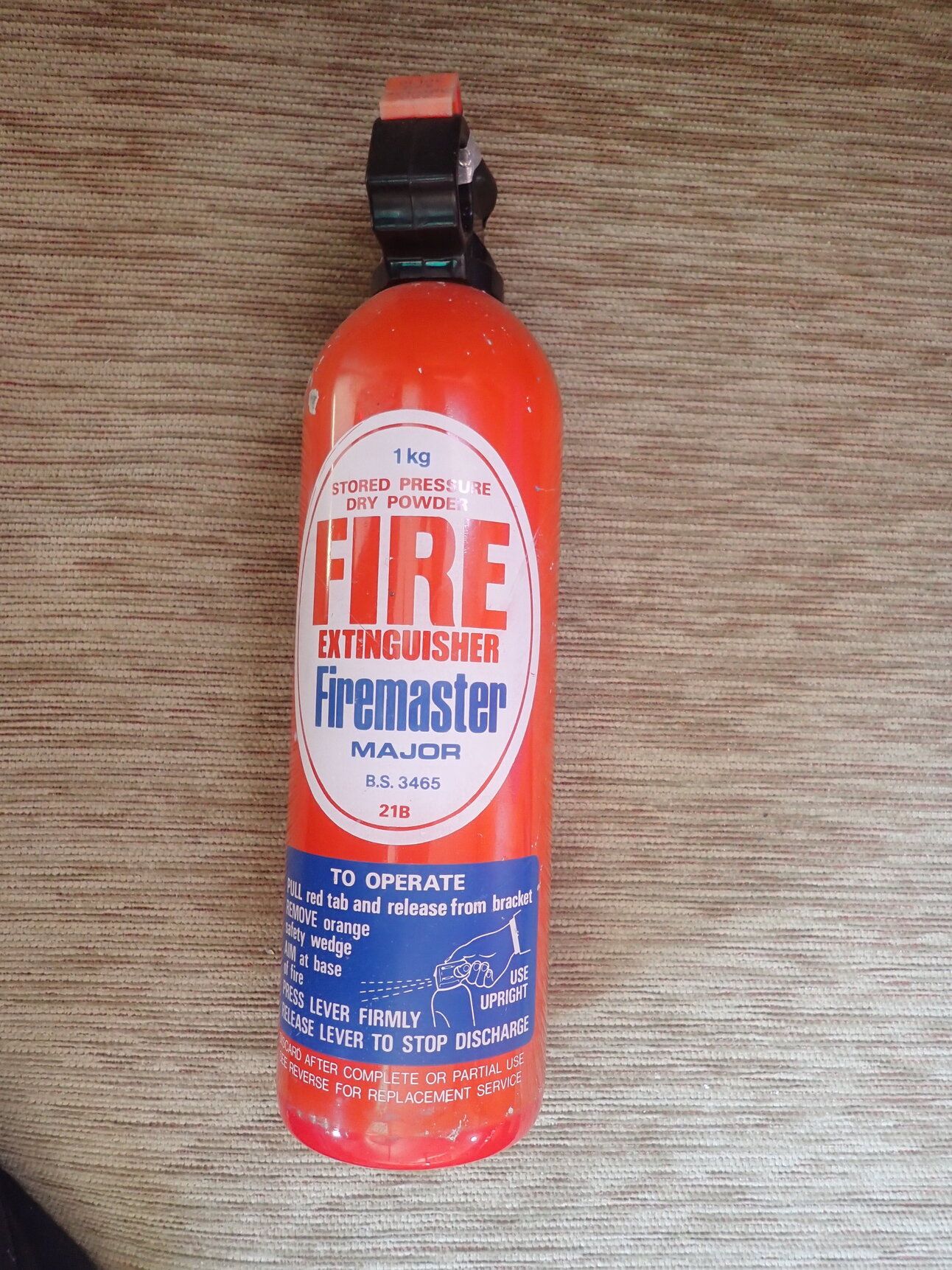 All of the 1kg powder units were manufactured in 1986 and at 37 years of age are way beyond any reasonable service life and must be disposed of. It would be a prudent upgrade to carry a modern 2 or 3 litre water mist extinguisher, which has greater utility and leaves a lot less mess than the small powder units.