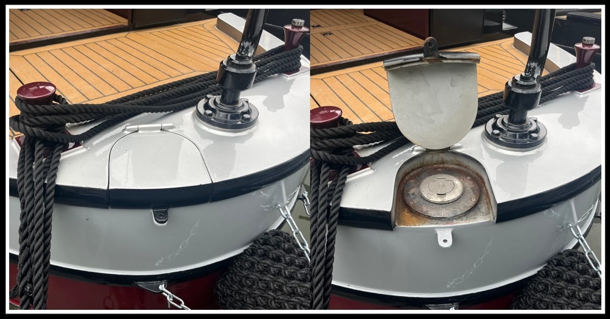 An interesting observation I picked up on at Crick Boat Show this year was padlock fittings on narrowboat fuel filler caps. They have become an increasingly common sight during surveys and a sign of both the high price of fuel and a reported rise in fuel theft. The lock is a sensible measure to protect the owner’s fuel, but the fuel diverter fitted around the fuel filling point forces any spilt fuel into the canal, rather than into the vessel.