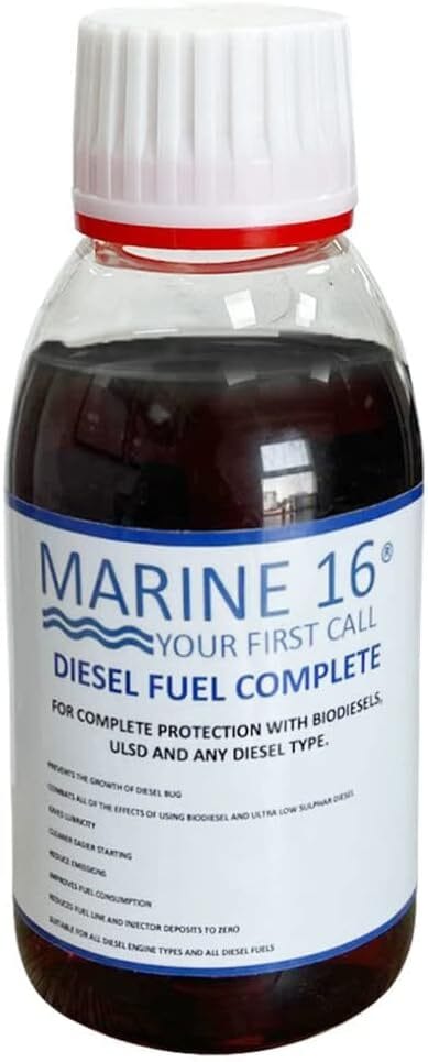 To help mitigate the downsides of modern diesel fuel, Marine 16 has an additive called Diesel Fuel Complete which contains cetene improvers, lubricity improvers, detergent and an antioxidant and biocide to improve storage. Designed for continuous use every time you fill the tank, the dose rate is 100ml per 100 Litres.